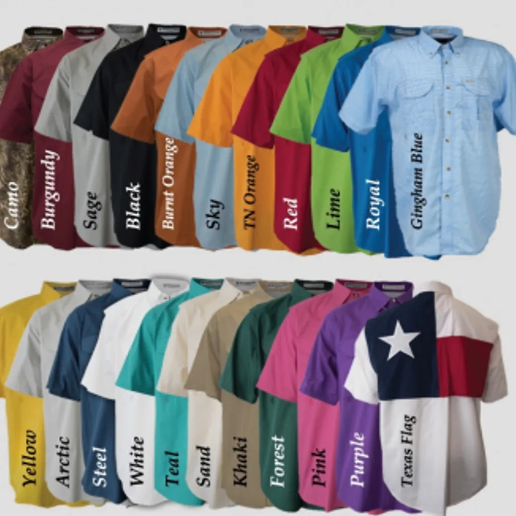 Light 3.6 oz 48/52 poly/cotton. Stain and wrinkle resistant. Pocket on both right and left chests. Extra loops to carry all of your fishing accessories. Cover flaps with velcro closures on both pockets. Extra full cut for extra comfort. Back vented flap has velcro closure. Available in standard and tall sizes.